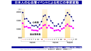 そして実際に冬場は脳や心血管病のリスクが上がります。そうならないように内服薬を調整する必要があります。